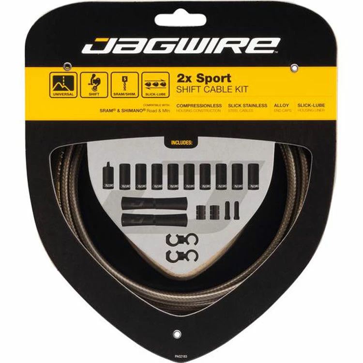 La série Jagwire Universal-Sport est idéale pour remplacer les câbles d’origine par des câbles de meilleure qualité et pour donner beaucoup plus de style à son vélo. Les câbles de changement de vitesse rectifiés en acier inoxydable avec embout simple pour les systèmes de changement de vitesse SRAM® et Shimano®. Le Slick-Lube Liner réduit drastiquement la friction et assure une énorme précision de changement de vitesse et une longue durée de vie. La variante double est destinée au dérailleur avant et au dérailleur arrière, la variante simple au dérailleur arrière ou au moyeu à vitesses intégrées.