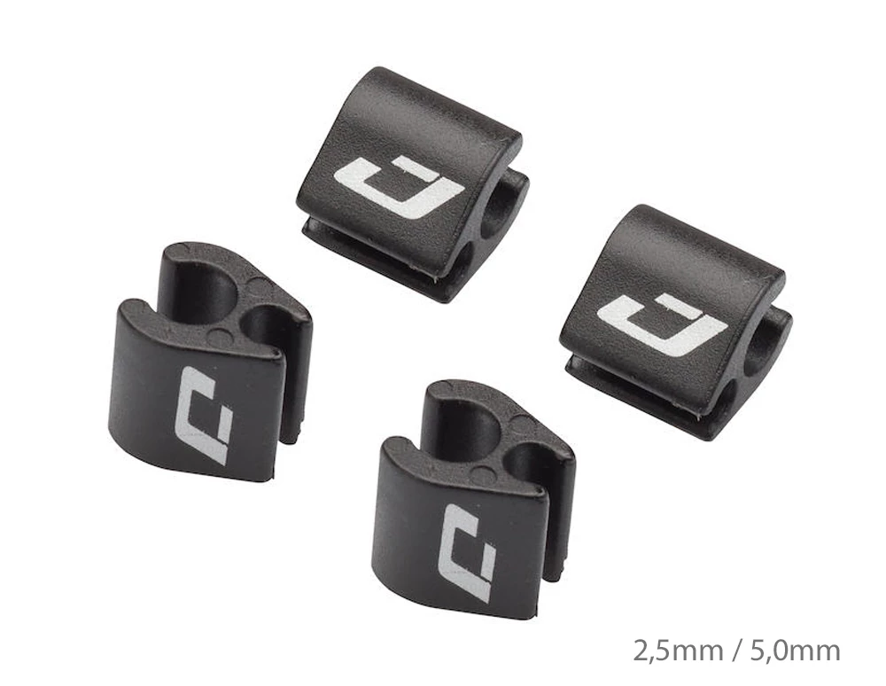 Crochets de serrage de Jagwire pour relier les gaines extérieures des circuits électroniques ou mécaniques aux gaines extérieures des freins hydrauliques. Idéal pour un cockpit bien rangé.