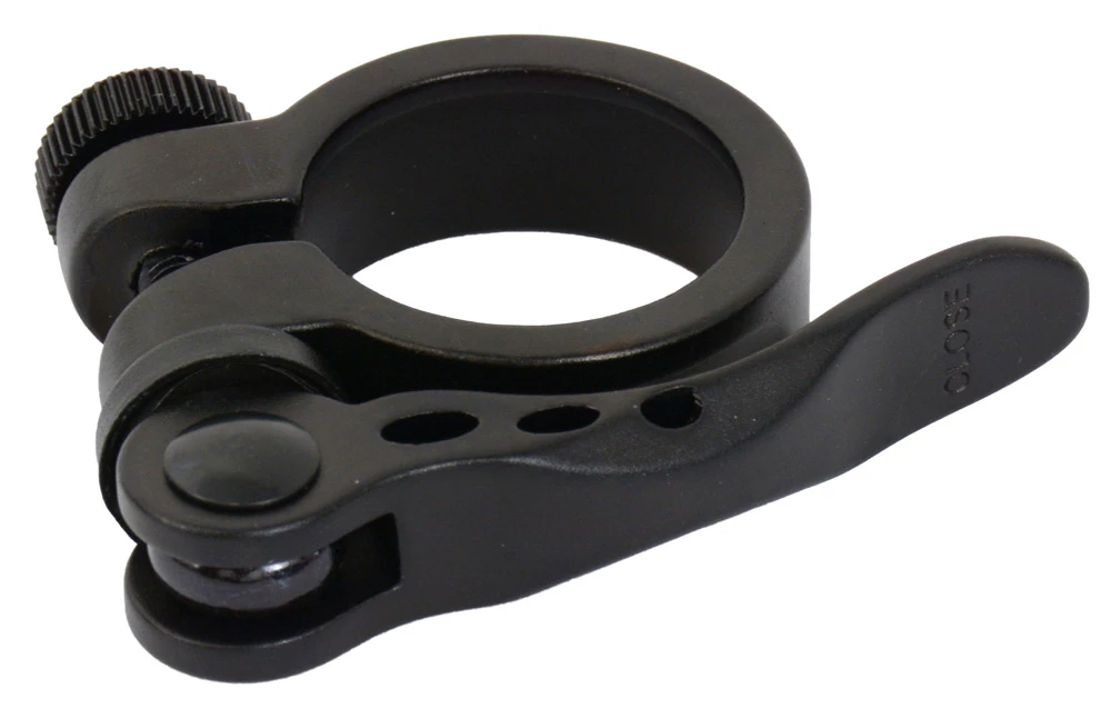 Attache de selle en aluminium très compacte et ergonomique avec fermeture rapide.